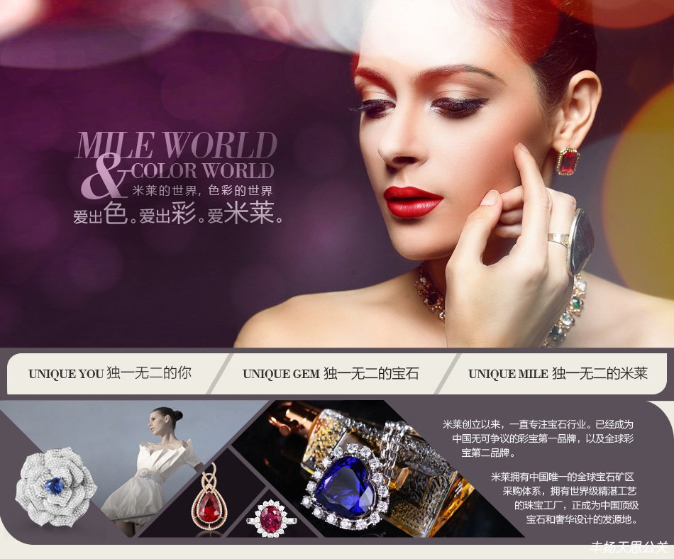 中國(guó)彩色寶石領(lǐng)導(dǎo)品牌,米萊珠寶的款式結(jié)合紅藍(lán)寶石、碧璽、坦桑石等熱門彩寶,搭配鉑金、白金、玫瑰金,創(chuàng)造出豐富多彩的珠寶樣式,整體設(shè)計(jì)大氣奢華,又不失前衛(wèi)與靈氣。