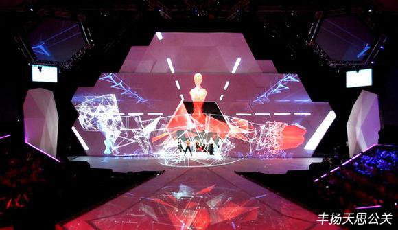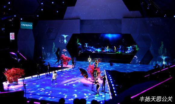 一個(gè)海底世界出現(xiàn)在觀眾眼前。全息影像中的模特在海底走秀,并完成了換裝。