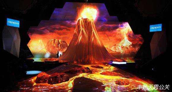 高噴的火焰、流淌的巖漿,濃烈的紅色與火光,異域風(fēng)情撲面而來。