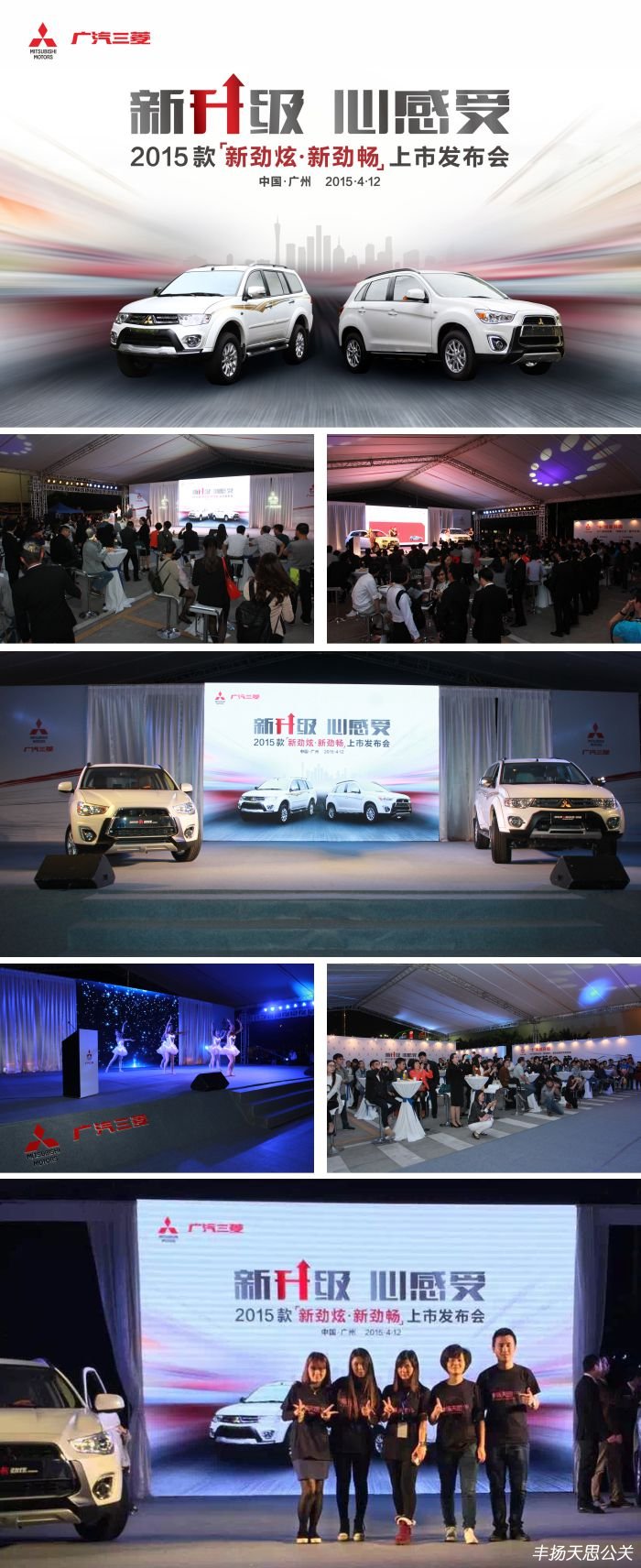 導讀:2015年4月12日,由豐揚天思策劃及執(zhí)行的新升級心感受廣汽三菱2015款SUV雙雄新車上市發(fā)布會在廣州5號停機坪隆重舉行。本次活動首推新勁炫、新勁暢兩款車型,一眾廣汽三菱迷早早的來