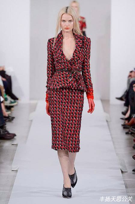 在品牌本季的發布會上,我們明顯可以看出有一些時裝是出自英國設計師John Galliano之手,特別是發布會一開始呈現的幾個領口褶皺和腰部褶皺的西裝造型,有著Dior經典套裝的影子。還有從模特們夸張的煙熏妝容和發型中也 可以看出John Galliano在Dior期間的戲劇性風格。盡管如此,不知道是不是受到法國文化的啟發,de la Renta那些以彩色褶皺收腰禮服和鐘形帽的開場,還有油彩濃妝的眼影和些許情色意味的薄紗手套,確實頗具Galliano時期Dior的神韻。發布會中 出現的其他款式有著Oscar de la Renta一貫的設計風格,已是八十歲高齡的設計師Oscar de la Renta在2013年將迎來他的從業50周年,可以說沒有他不曾涉及的設計領域。在品牌的2013秋冬發布會上,夸張搶眼的棉麻布印花和提花時裝是本季 的重點設計。本案例由豐揚天思分享